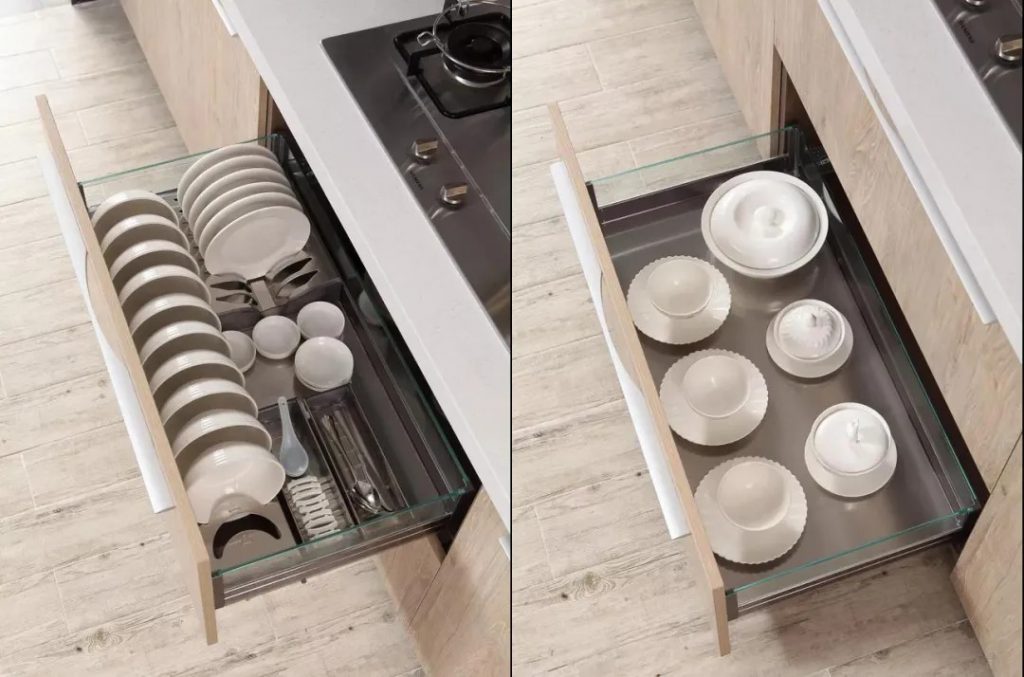 地柜多層多格儲(chǔ)物空間,食材用具分類隔離、取用方便。