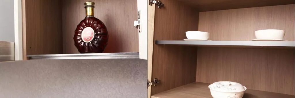 珍藏的酒和不常用的餐具都可以放吊柜。