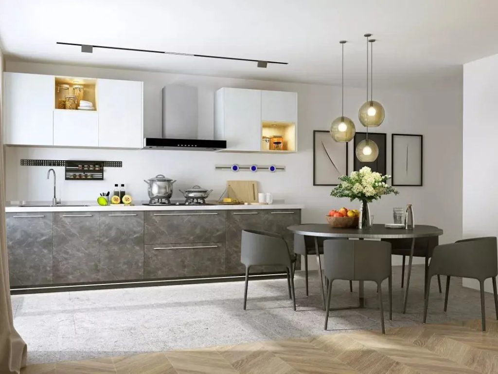 廚房里除了煙火氣還有浪漫!廚房不光只是料理美食的場(chǎng)所,也是讓愛(ài)情和親情升溫的地方!如果你的家是開(kāi)放式廚房,有足夠的空間,你可以嘗試將餐桌搬入廚房,這同樣是一種不錯(cuò)的選擇!