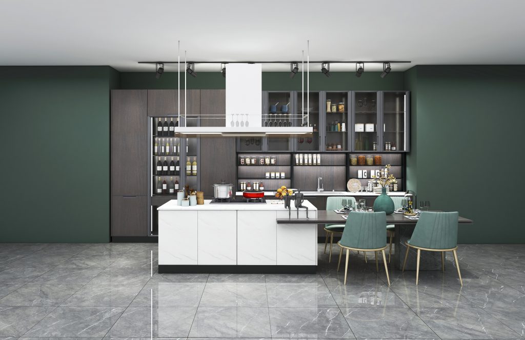 中島與餐臺(tái)融為一體,功能齊全,隨心所欲創(chuàng)造歡喜美食生活;超級(jí)收納系統(tǒng),吊壁柜一體化,盡展空間無(wú)限與收納之趣;人墻式儲(chǔ)物柜與極簡(jiǎn)鋁框玻璃門交相呼應(yīng),有收有敞,通透靈動(dòng);雪花白巖板臺(tái)面,紋理清晰、高強(qiáng)硬度、零滲透、易清潔、抗菌環(huán)保。