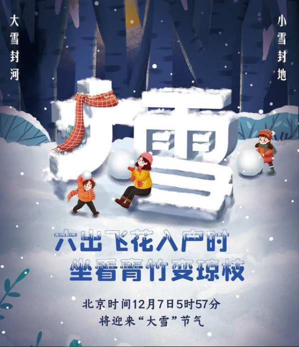 北京時(shí)間12月7日5時(shí)57分將迎來(lái)“大雪”節(jié)氣,標(biāo)志著仲冬時(shí)節(jié)開(kāi)始。它是二十四節(jié)氣中第二十一個(gè)節(jié)氣,也是冬季的第三個(gè)節(jié)氣。