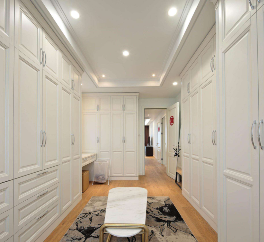 傳統(tǒng)衣帽間下你的動(dòng)線就變成需要先去洗手間洗漱,接著梳妝臺(tái)化妝,然后再跑到衣帽間挑選衣物。你需要跑來跑去的,會(huì)無形中占用許多時(shí)間。