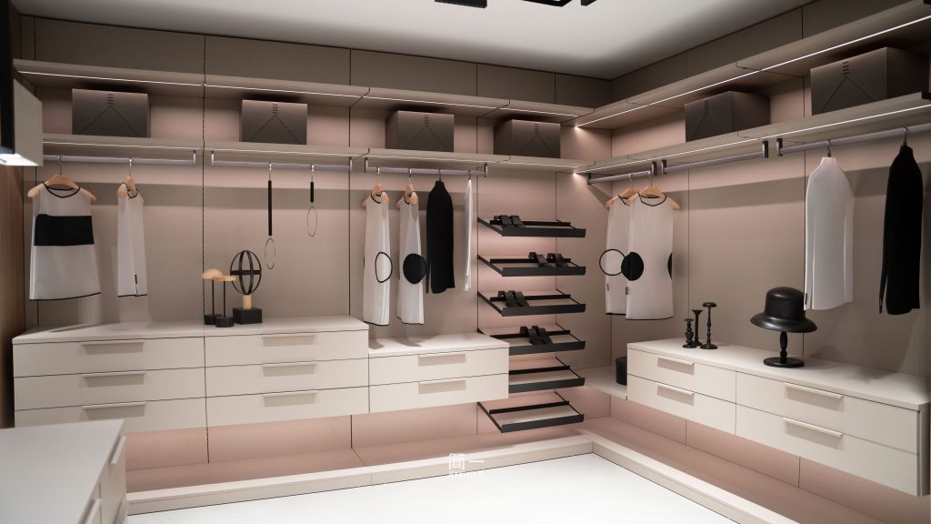 女人最大的夢想就是擁有一個(gè)大大的衣帽間,里面放滿整整齊齊的衣服,有你的也有他的。各自獨(dú)立,卻又能互相包容——這是情侶間最讓人羨慕的狀態(tài)。兩者相互獨(dú)立又彼此聯(lián)系,享受各自的悠閑,這讓整個(gè)家的包容性變得更強(qiáng)。