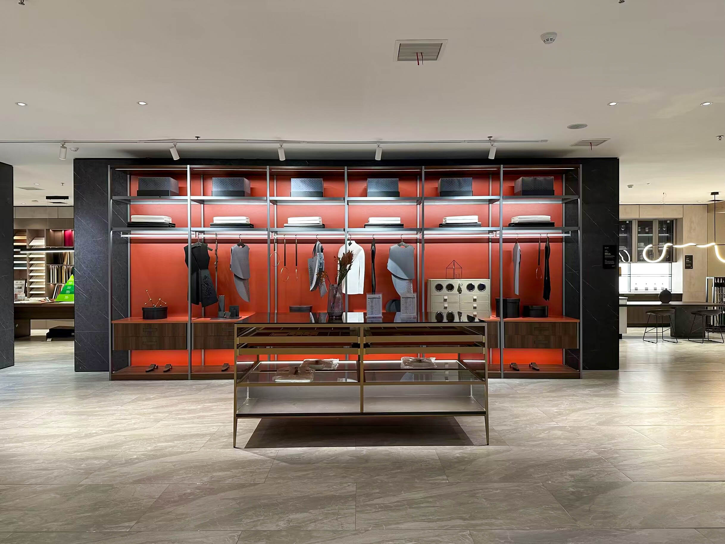 意式極簡路易威登的設計理念強調(diào)將冗余的元素剔除,注重空間的簡潔和功能的實用。這種設計風格追求的是簡約而高雅的美感,將繁雜的細節(jié)化繁為簡,通過極簡的線條和幾何形狀來表達簡潔和現(xiàn)代感。極簡的護墻系統(tǒng)、極簡鋁框和鋼化玻璃層板等元素被巧妙地運用,使空間顯得更加開放、明亮,給人一種寬敞、舒適的感覺。
