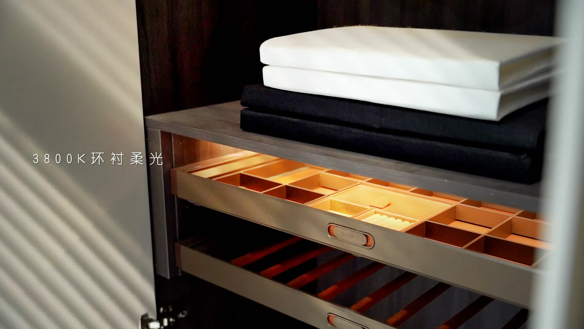 在細節(jié)上,花都凸顯了極簡現(xiàn)代的精髓。智能燈鏡和MDD氛圍燈的應用,為衣柜增添了柔和的照明效果,營造出溫暖浪漫的氛圍。智能燈鏡不僅能讓您的妝容更加精致,還能顯示時間和溫度,為您提供更多的便利。MDD氛圍燈的柔光效果,為衣柜空間增添了一絲溫馨和浪漫,讓您在選擇衣物的同時感受到愉悅和放松。