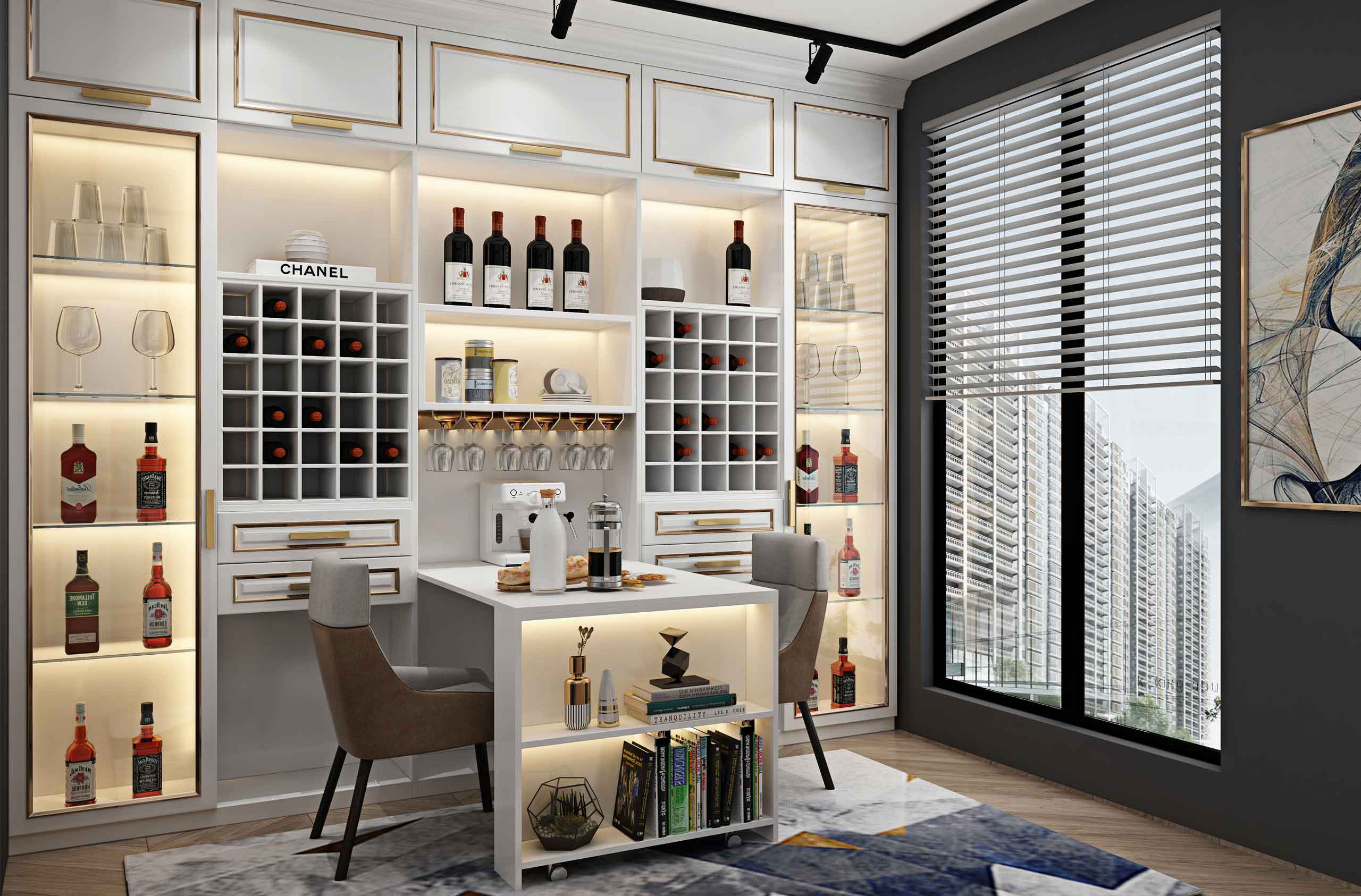 元素:輕奢古銅 | 十字酒格 | 環(huán)襯光影 | 下翻折疊桌;